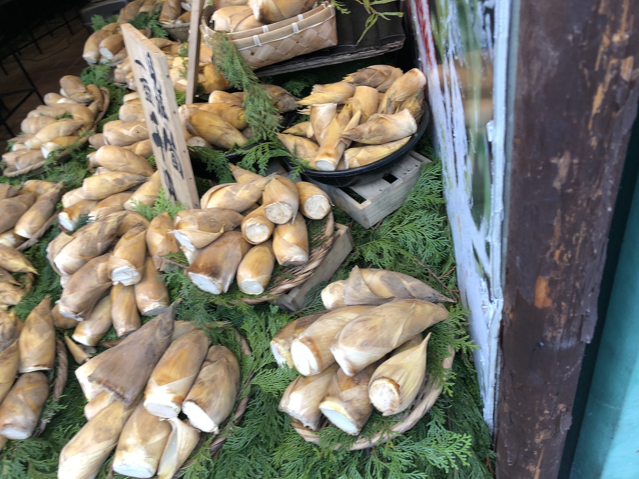 西国街道沿いに、店の前に旬の野菜が所狭しと並べられている店が呼んでいます。見ると美味しそうな海老芋が籠に積まれて手頃なお値段で。徳島の蓮根も細いハネの品が驚くほど安く、迷わずザルを持って店内へ。みなし筍という肥料をやるときに土を掘り返したときに摘む筍の赤ちゃんが。立派なものは手の出ないほどのいいお値段です。旬、旬に通いたいお店です。