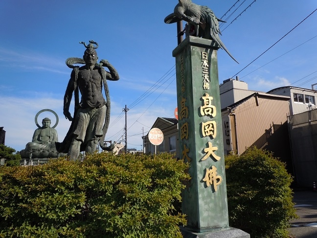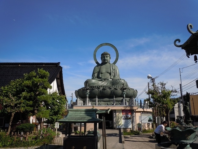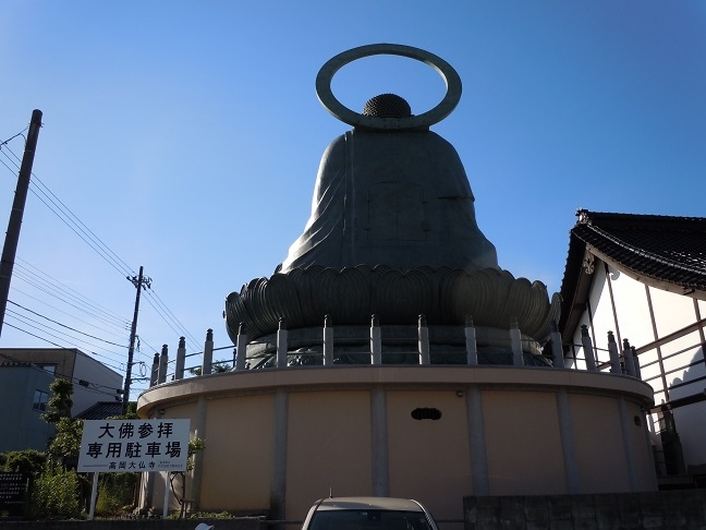 富山に来たのでやっぱり寄ってみようという事で、車椅子の母と行きました。レンタカーのナビで探すも、なかなかお寺を発見出来ず。結局大仏様の予想外のサイズ感と町中にあるというロケーションに惑わされていました。お寺の駐車場から大仏様の後ろ姿が拝見出来るくらいの近さでした。大仏の中を案内する方がいらしたのも驚きました。ご利益を期待するとかではなく、何の心構えもなく慌ただしく寄ってしまった事を少し後悔しました。町中の狭い敷地のお寺なのにバリアフリーのトイレがあったのは助かりました。
