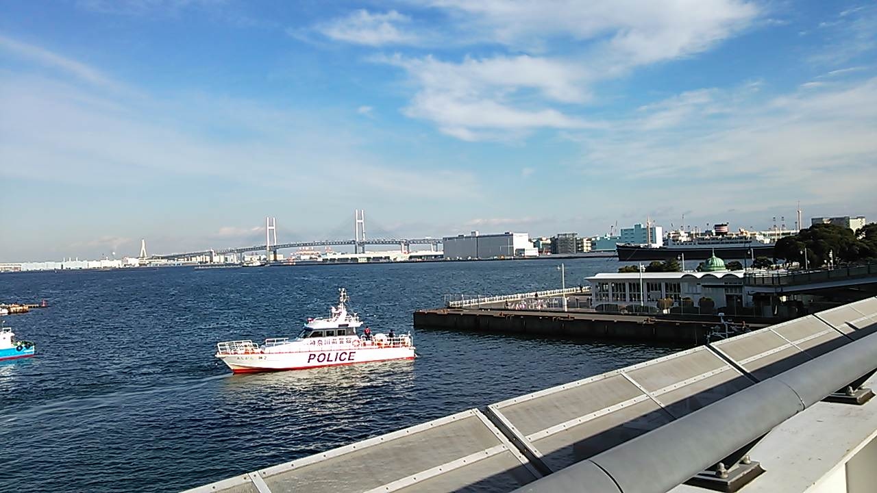 気持ちよい海風を受けながら海沿いを歩けば、高所から観覧車やコンチネンタルホテル、大桟橋、ベイブリッジや氷川丸と続く横浜らしい海景色を楽しむことができ、爽快感抜群でした。