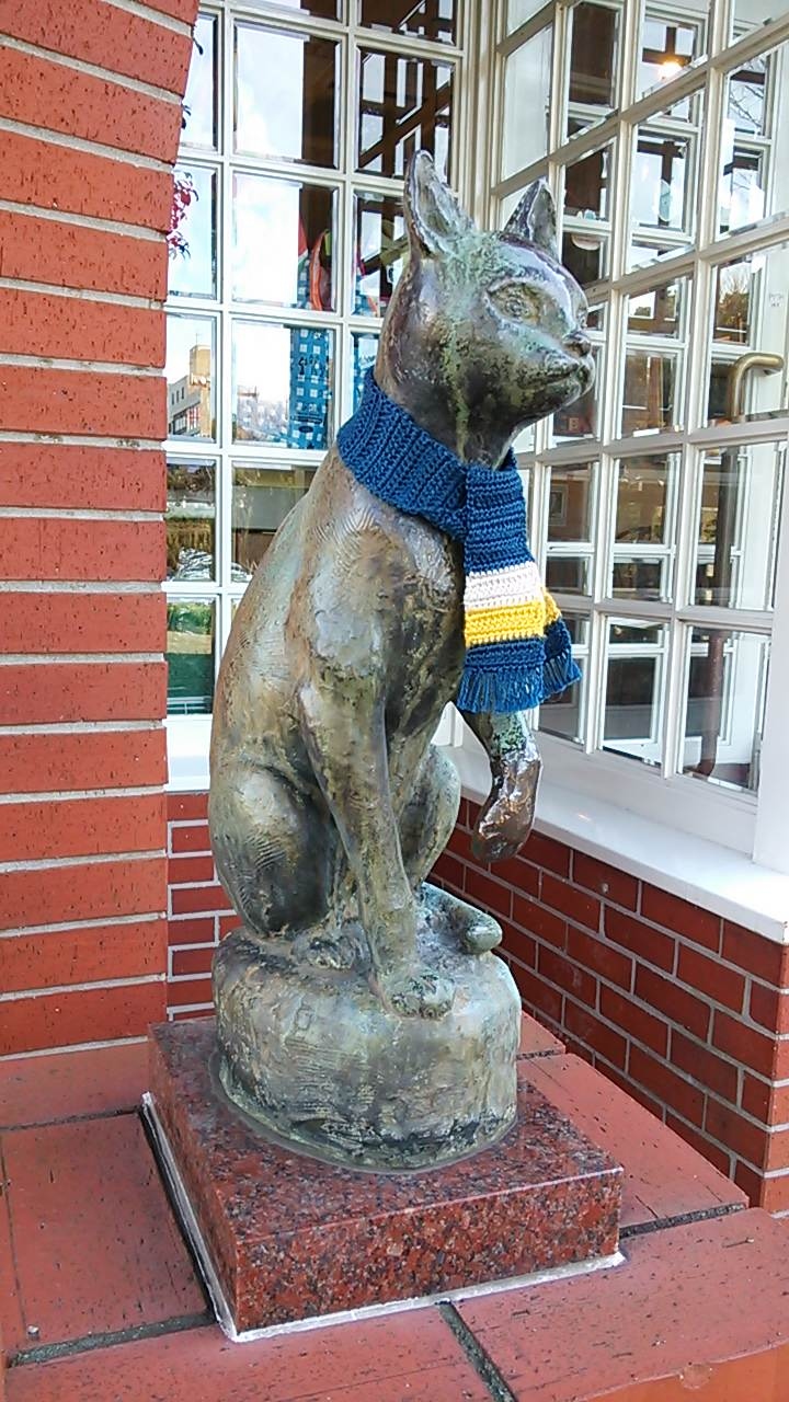 (猫好きということで彼が所持した猫の置物も多数展示されているのですが、外にも猫の銅像がありました(冬ということでマフラーを着けてたのが面白かったです))