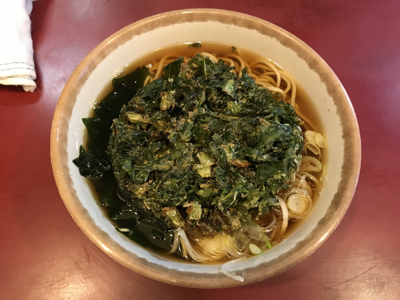 さて、春菊天そば。サクサクの春菊天はとても良いのですが、ツユに出汁の味が感じられず、残念ながら好みではありませんでした。いつかインドカリーを試してみたいです。