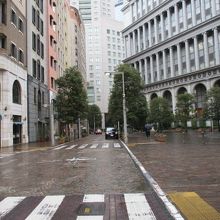 JR新橋駅汐留口から新虎通りを渡り日比谷神社でお参りし浜松町方面へ歩いて7分ぐらいで汐留シオサイト5区イタリア街に着きます。イタリア街にはJRAウイング汐留、コモデッオ汐留などの建物がイタリアの街並み雰囲気を漂っており新橋駅前とは全く違うおしゃれな味わいがあり石畳が敷かれて異国情緒も味わえますので訪れることをお勧めします。映画ローマの休日のような雰囲気の一画でした。