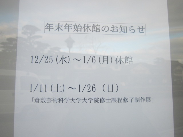 入口の掲示を見ると、年始も6日まで休館とのことで、ちょっと年末年始の訪問時にはお勧めできない美術館だと思います。