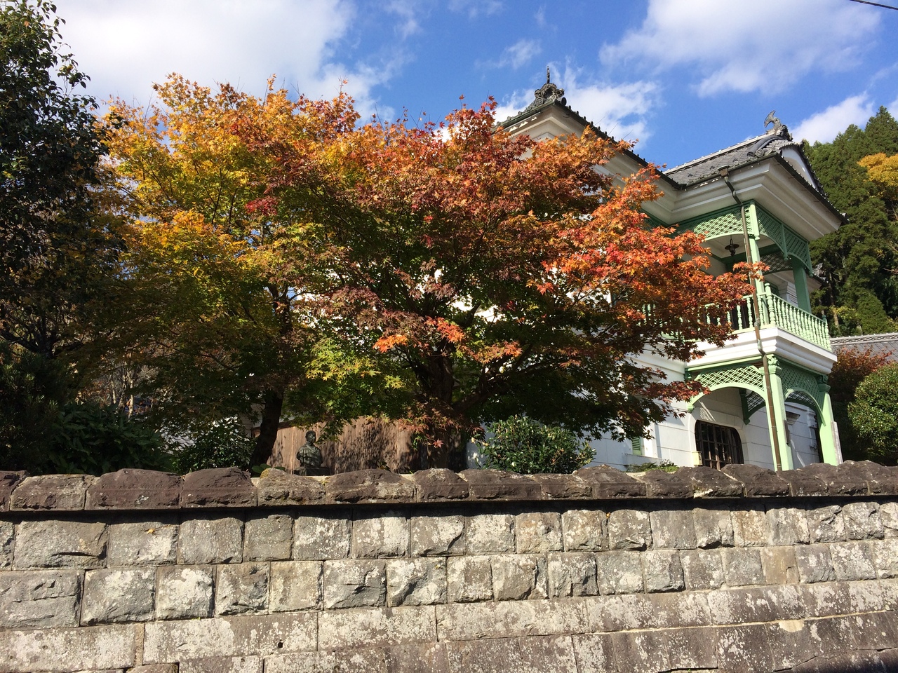 國指定重要文化財です。建築の参考になるので、見つけて良かったです。看板が小さくて妻が見逃していたら、たどり着けなかったと思います。無料駐車場にレンタカーを停めて、外側だけ見学させていただきました。紅葉が綺麗でした