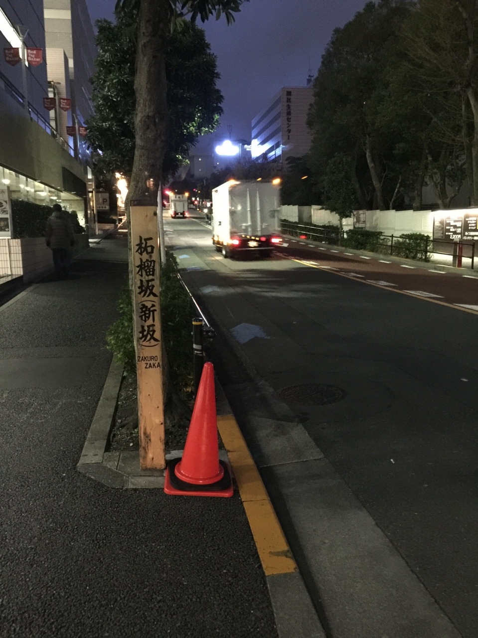 品川駅高輪口を出て第一京浜を渡ったシナガワグースと品川プリンスホテル、ウイング高輪WESTの間を高輪方面に登る坂です。未だ夜も明けぬ早朝に通りました。坂にあるロイヤルホストで朝食を取りましたよ。