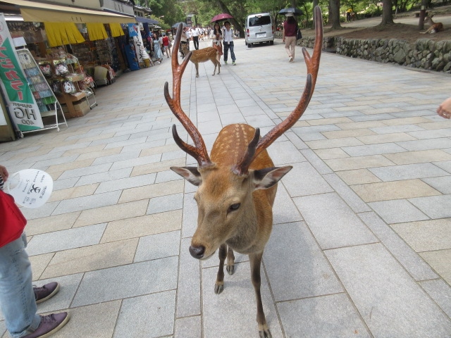 奈良では鹿は神聖な生き物ということで保護されていて、奈良公園や春日大社を中心にたくさんの鹿たちに会えます。道を普通に歩いているし、集団で公園内にいるしで、あちこちで見られました。鹿せんべいをかったら、ちょっと怖いくらい集まってきました。奈良らしい光景でよかったです。春日大社には鹿苑もありました。