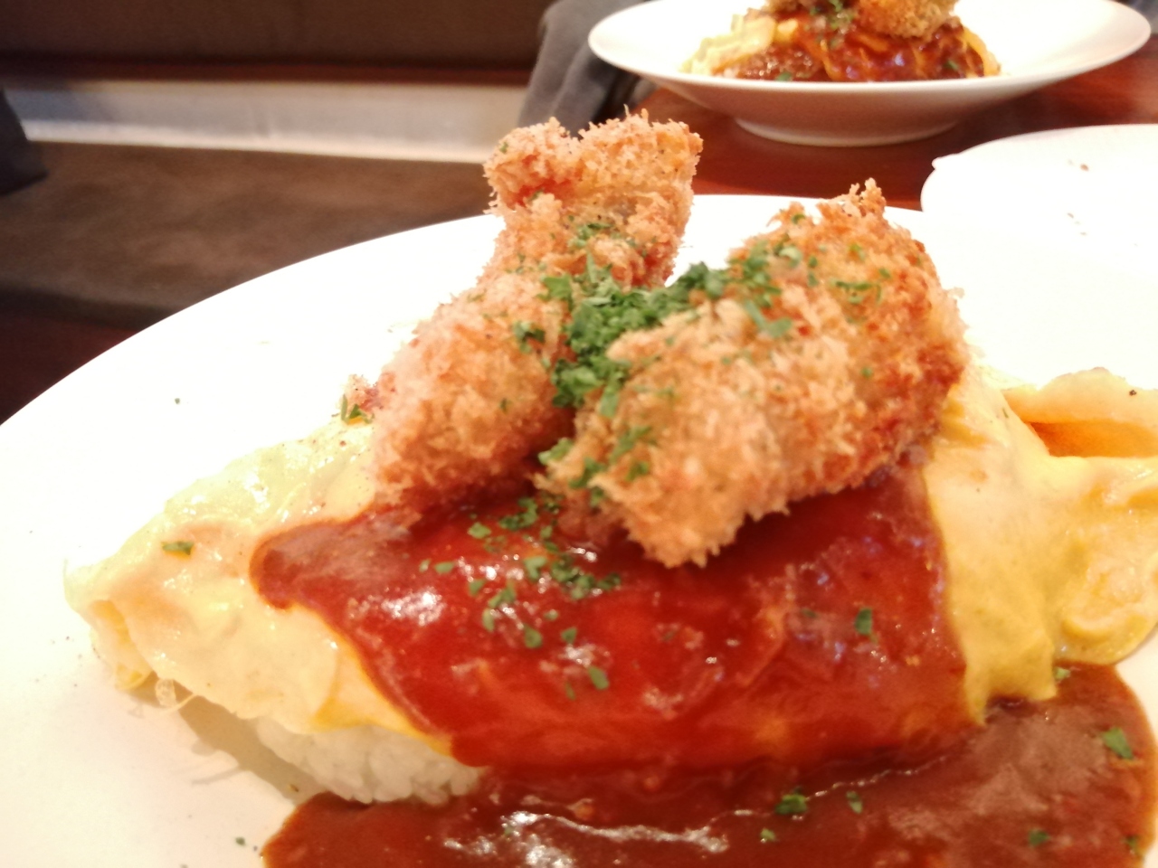 オムライスにはカキフライが2個乗っていました。満腹感が凄かったです。