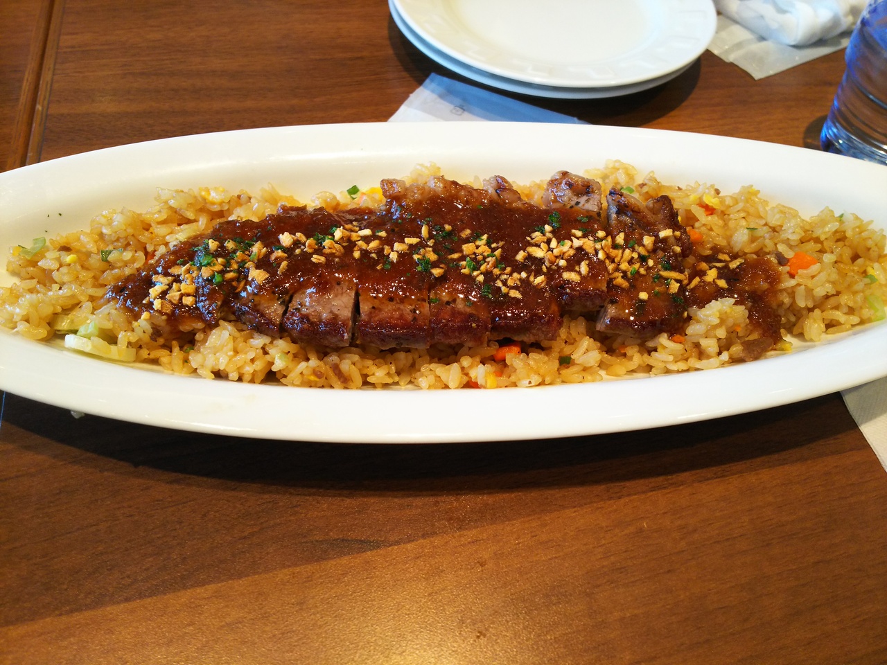 私はお肉が大好きなので、ステーキガーリックピラフを頂きました。