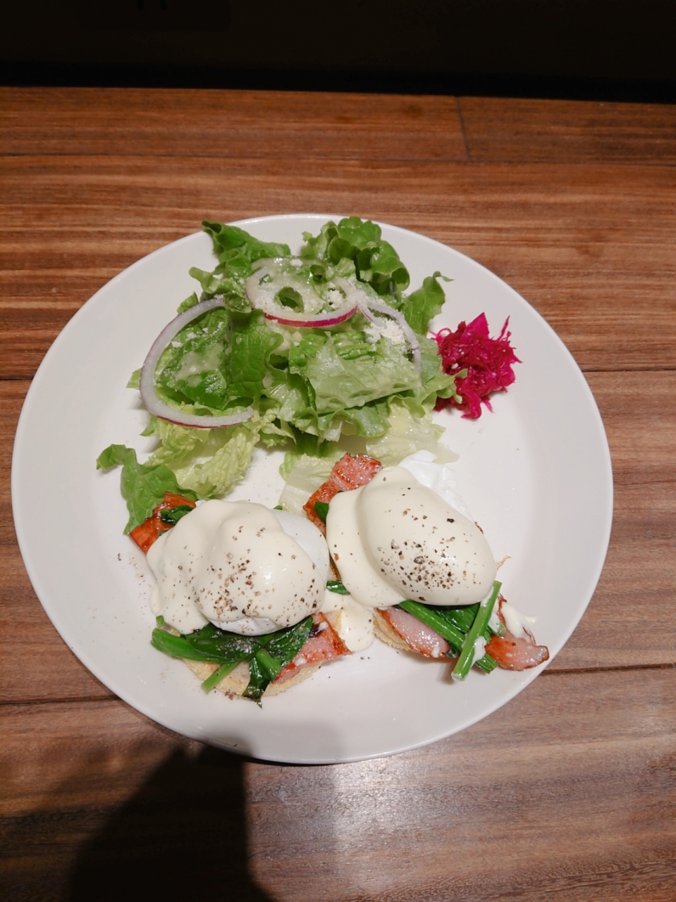 休日のモーニングで利用しました。9時くらいに着きましたが席は半分くらい埋まってました。レジでモーニングセットのエッグベネディクトとドリンクを注文。エッグベネディクトの卵がトロトロでとても美味しくベーコンとの相性やソースも美味しかったです。サラダもついて落ち着いた雰囲気でパンも豊富に揃ってました。