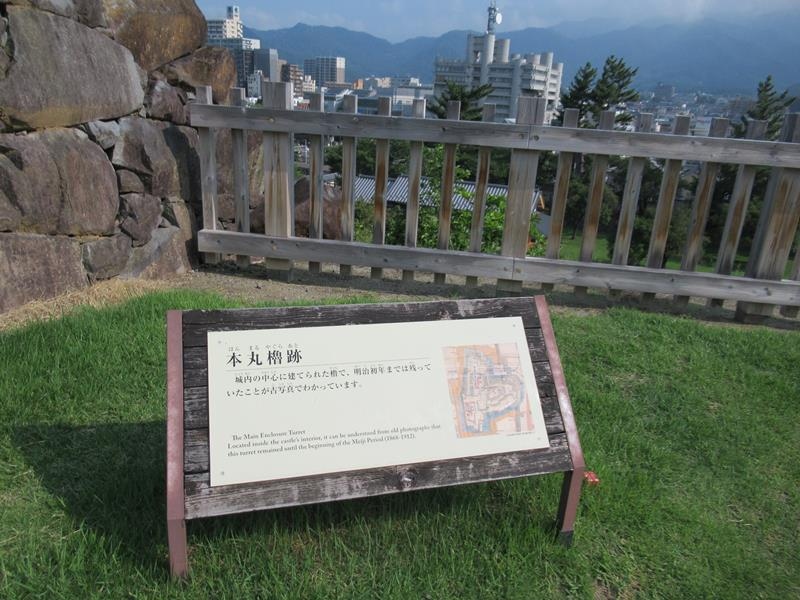 案内板には「城内の中心に建てられた櫓で、明治初年までは残っていたことが古写真でわかっています」と書かれていました。
