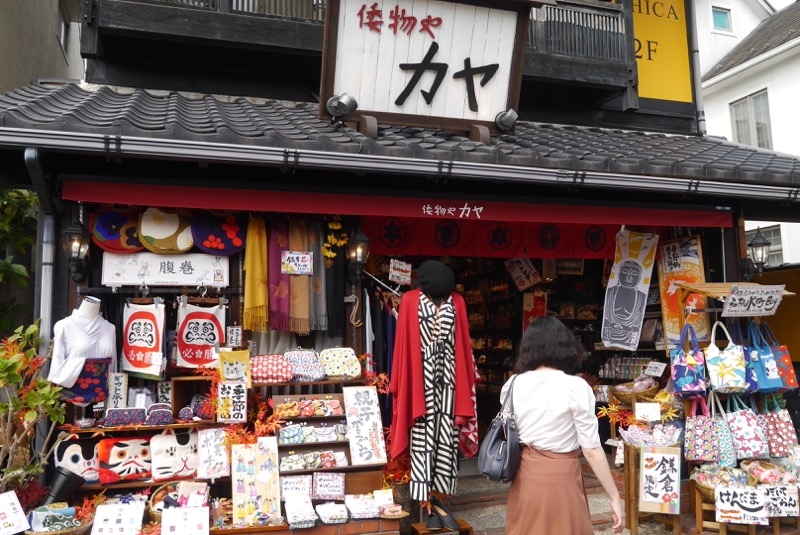 和雑貨のお店です。鎌倉の観光エリア内にはいくつかのこういった和雑貨の店舗がありますが、いろいろ見た結果個人的にはここのお店のものが全体的に自分の好みと合っていたなぁ〜と感じました。「ほかのお店も見てからまた回ろう」と思っていたら時間になってしまったのですが、もしまた鎌倉にいく機会があれば店頭にあったがま口を買って帰りたいです。
