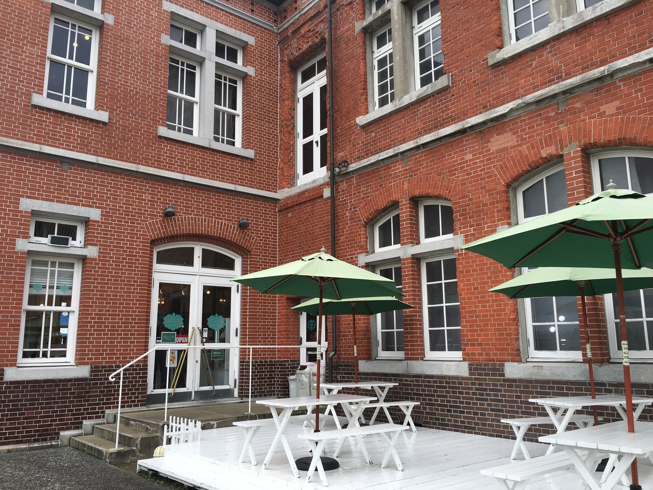 旧門司税関の1階の片隅にあります。果物専門店のフルーツカフェです。天気の良い日は外のテラスでも食べられるようですが、私が行った日は外のテラスは使われてないようでした。こちらでパフェでも頂きながら、はね橋が上がるのを見ていようかなと思いながらお店に入りましたが、店内ではね橋が見られる席は窓際の2席ほど。他の席では無理でした。