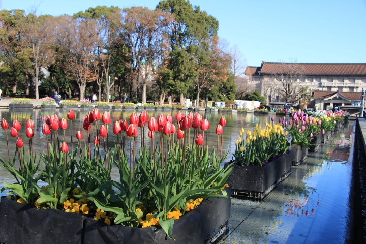 竹の台噴水の周りには色とりどりのチューリップが植えられたコンテナが並べられていてとても綺麗で良かったです。