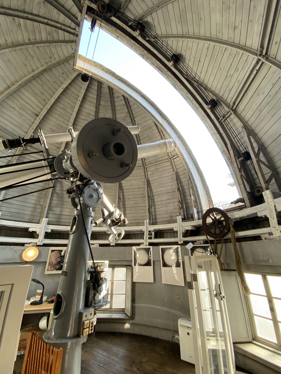 何も期待していなかったのだが、最初にみた「第一赤道儀室」にまず大興奮!大正時代に作られたみるからに古く味わい深い建物でした。中にはちゃんと解説の方もいて、どういう仕組みで太陽の黒点を観察するのか説明してくださいました。電気を一切使わずに機械を動かす仕掛けのレトロさにグッときます。