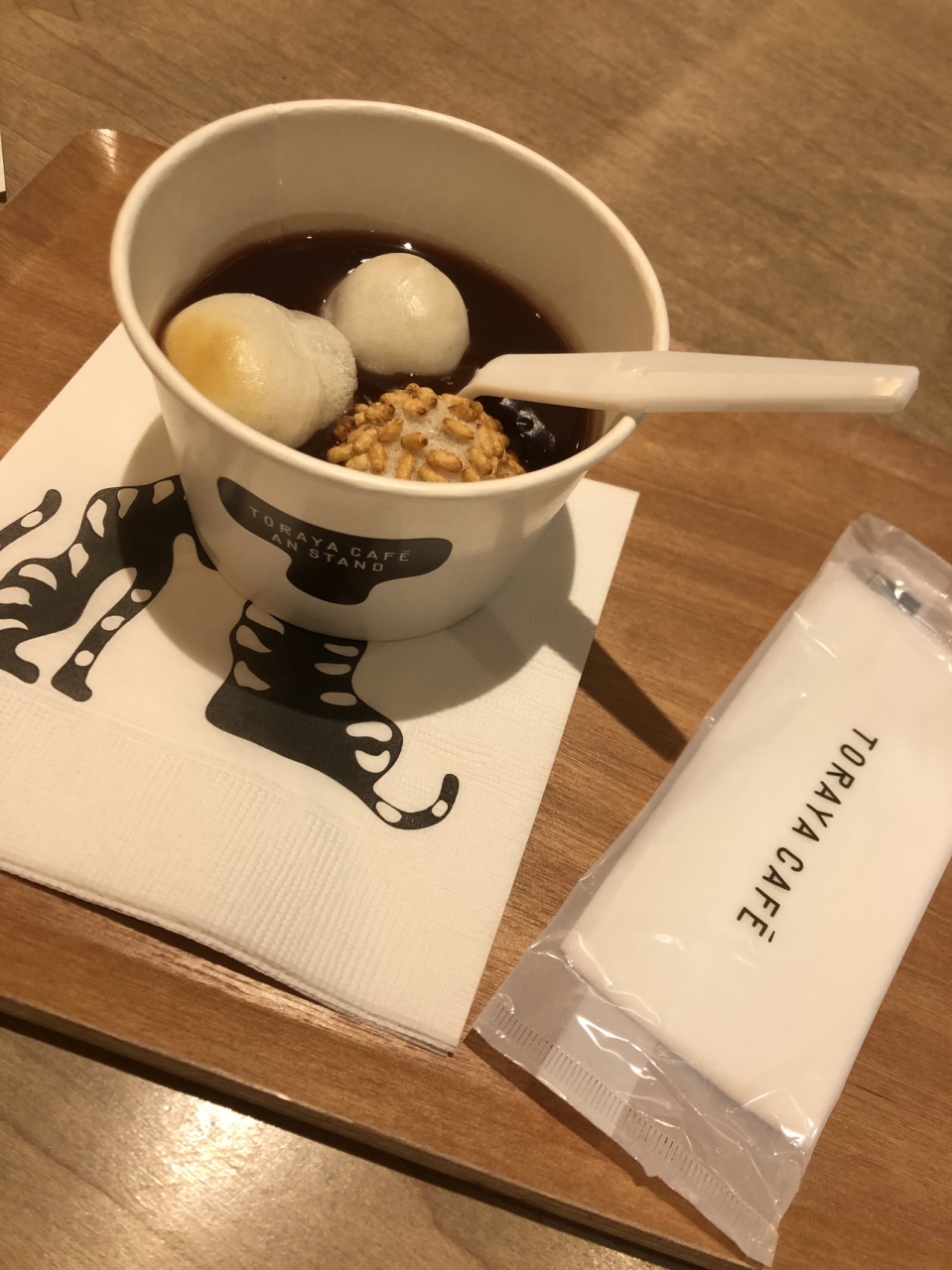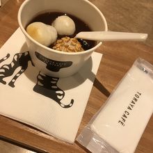 新宿駅の改札を出てすぐ近くにあります。店内はいつも混んでいるので、平日に行くのがおすすめです。土日は持ち帰りでしたら良いと思います。看板にも出ていた餅入りのデザートを注文しました。甘いものが好きな人にはお勧めしたいです。