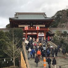 1月2日に江の島へ出かけたとき、鎌倉駅は、鶴岡八幡宮の参拝客で