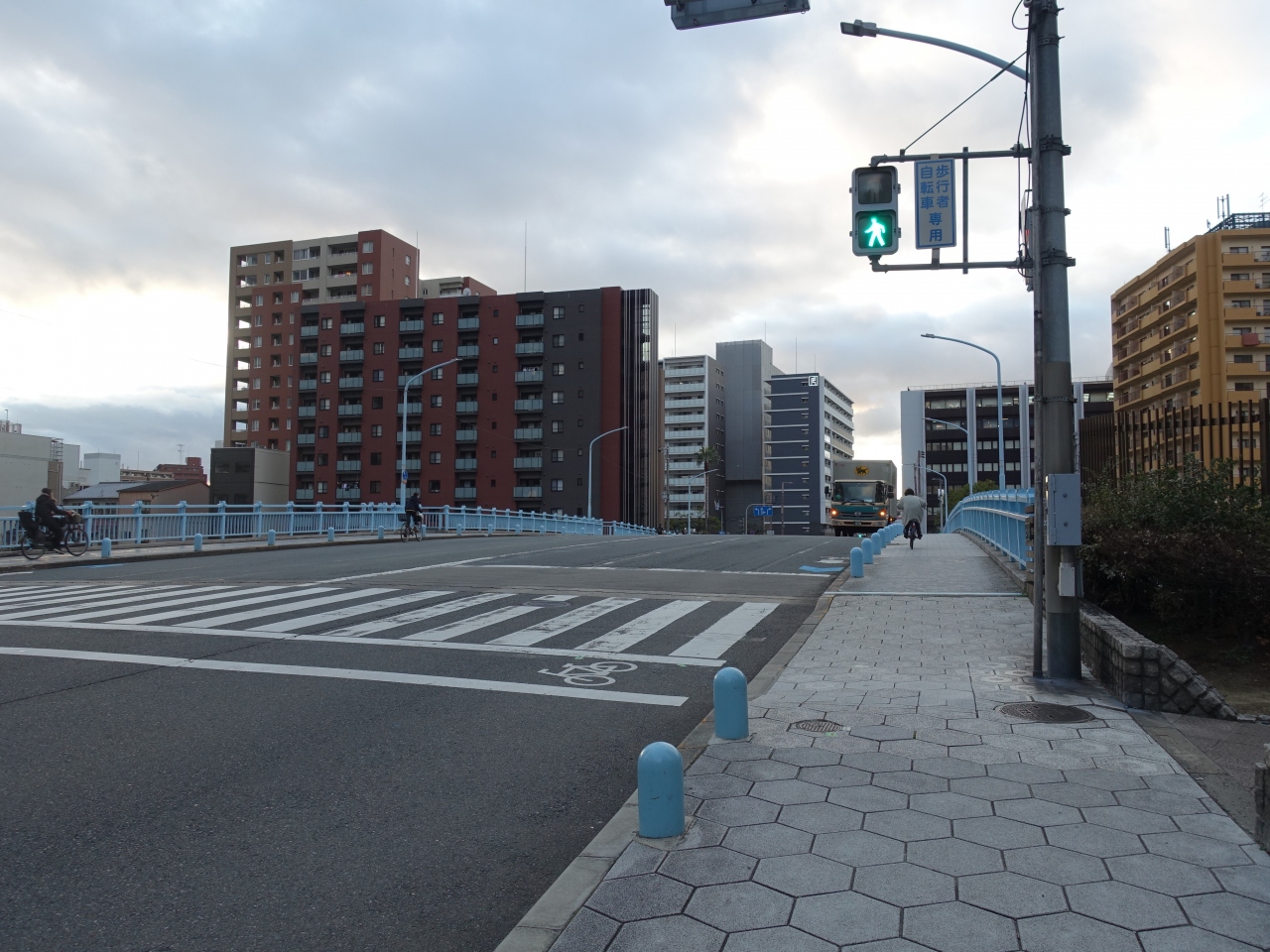 本町通りが木津川と交差する部分に架かる橋です。最初に橋が架けられたのは1868年ですが、その後、何度も架け替えられているのか、私たちが渡ったのは比較的新しい橋でした。趣などはさほどなく交通の要所としての橋という印象でした。
