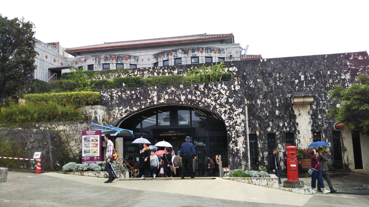 日本百名城巡りで行きました。駐車場、お土産物屋、レストランが一緒になった観光施設でした。インフォメーションで尋ねると百名城のスタンプを押せました。レストランは沖縄そばやポークステーキ、タコライスなど地元のメニューがあり、そんなに高くなかったです。