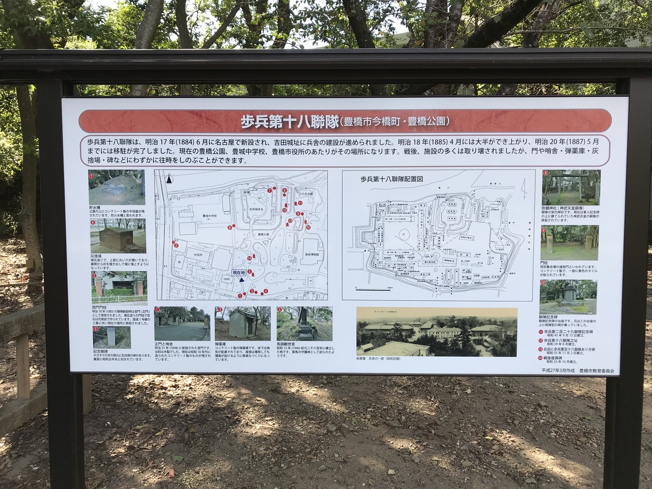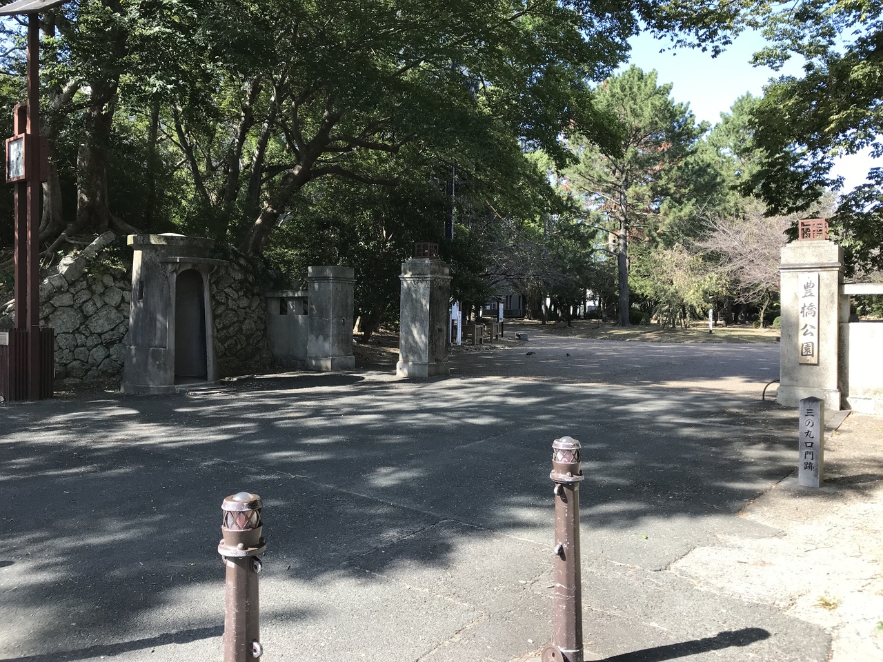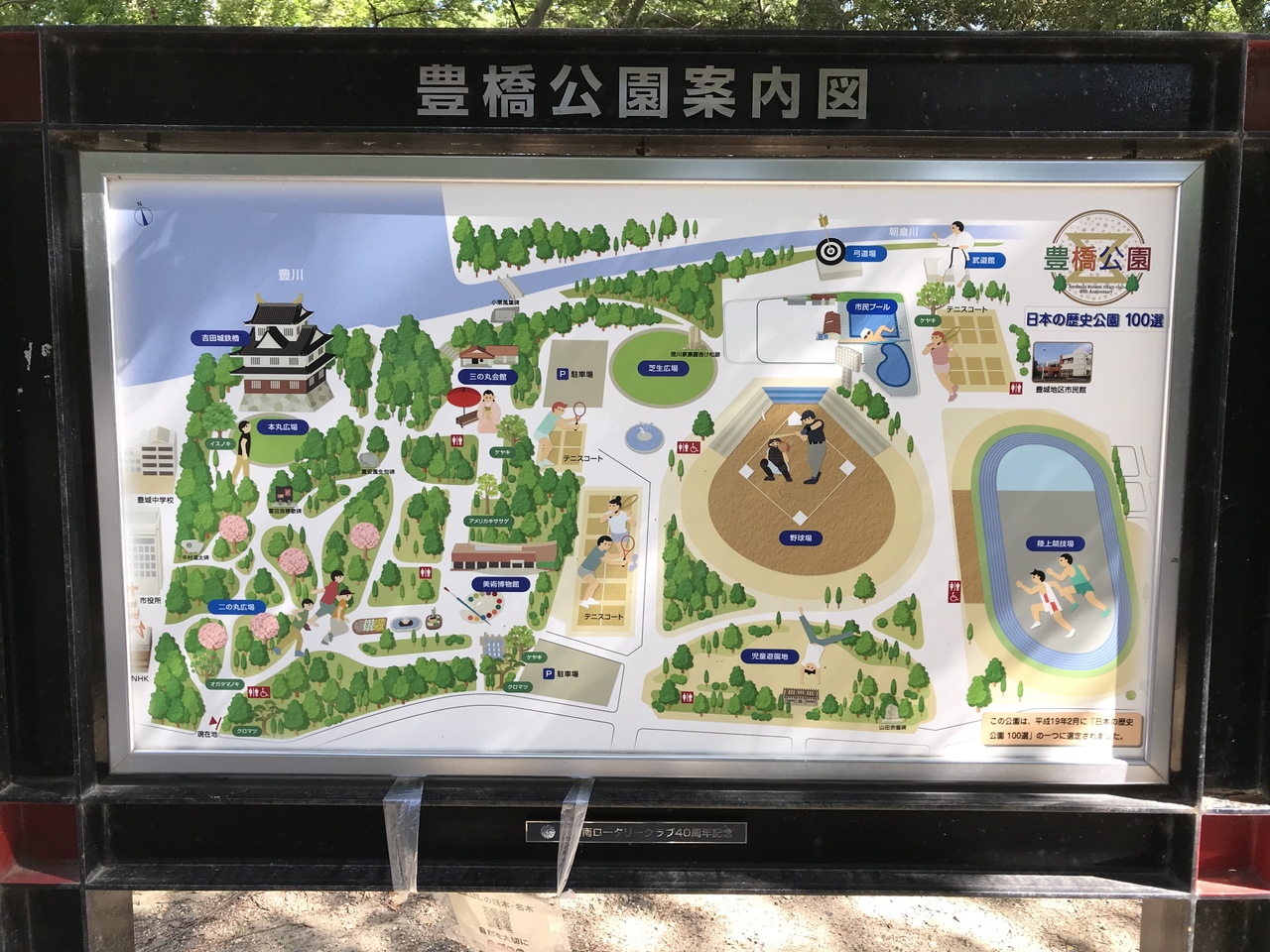 吉田城内跡にある豊橋公園は、吉田城の石垣・土塁・堀の遺構、旧陸軍の施設の遺構(歩兵第18聯隊の駐屯地)、陸上競技場・野球場・テニスコート等、児童遊園地、美術博物館があり、色々な目的で楽しめる場所だ。
