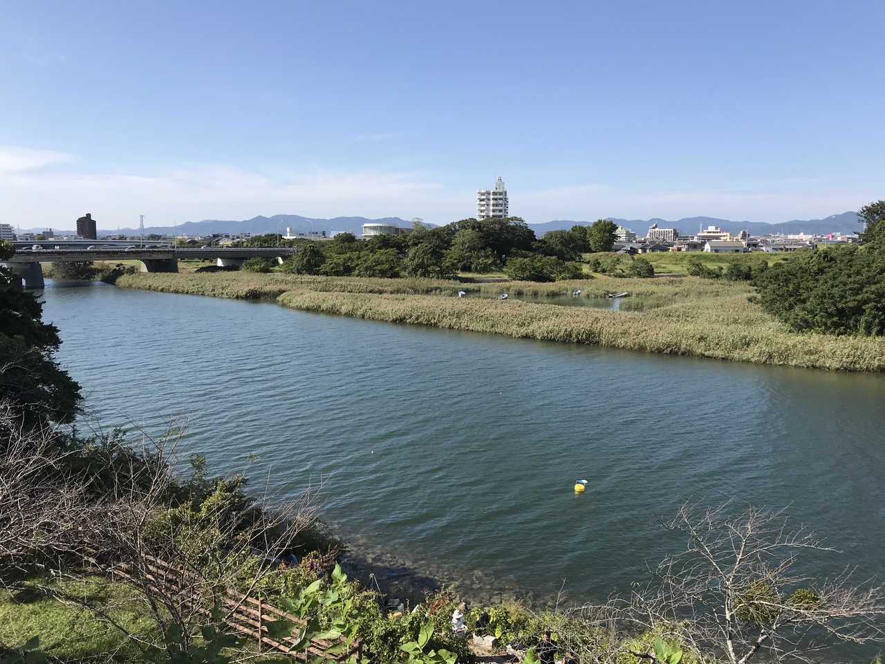 城跡の石垣や堀跡を眺めながら豊川沿いの遊歩道を歩くと気持ちが良い。