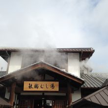 公共温泉場の渋の湯の近くにある立派な建物です。むし湯が楽しめる施設ですが、木曜日は定休日だったので、入れませんでした。そとに無料の足蒸しの場所もありますが、定休日の為鍵がしまっていました。向かいには蒸し湯広場がありました。