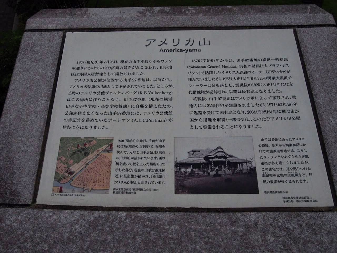 元町や元町を見下ろすように整備されています。ところで案内板に慶応3年にこの付近が競売にかけられ外国人居留地となった云々、とありますが慶応3年、1867年といえば大政奉還のあった年。江戸で大政奉還、横浜で外国人居留地の誕生。黒船来航は1853年。