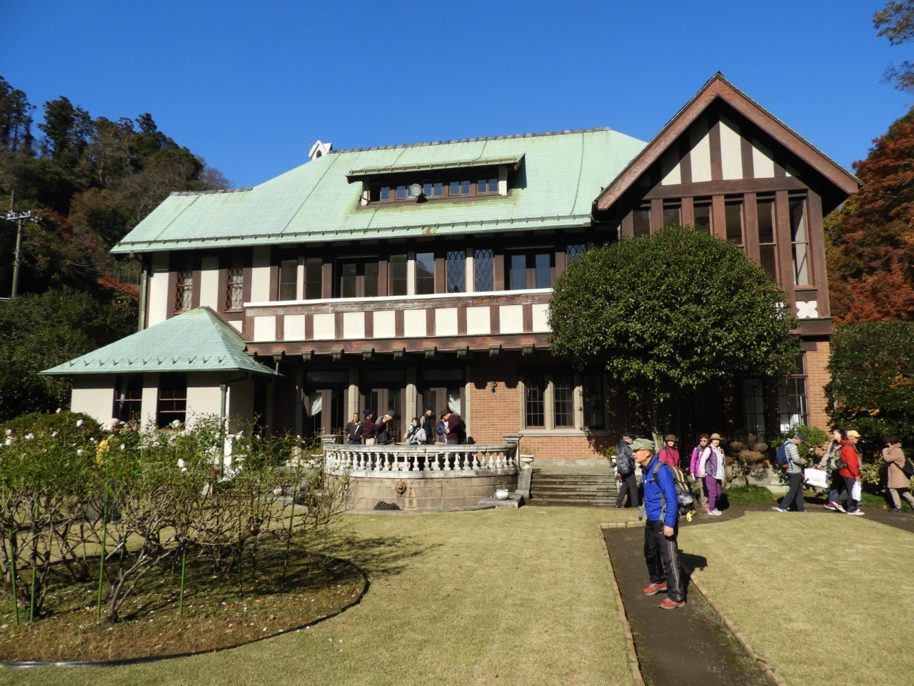 報国寺からパノラマ台方面に向かって巡礼古道を歩いていると、10分足らずで瀟洒な洋館が見えてきました。その建物は昭和4年に華頂宮博信侯爵邸として建てられたもので、国の登録有形文化財に指定されています。