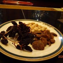 おつまみで出てきた干しブドウがとても美味しくて、枝付きの干しブドウはあまり見たことがなく、伺いましたらマスカットの干しブドウとの事でした。