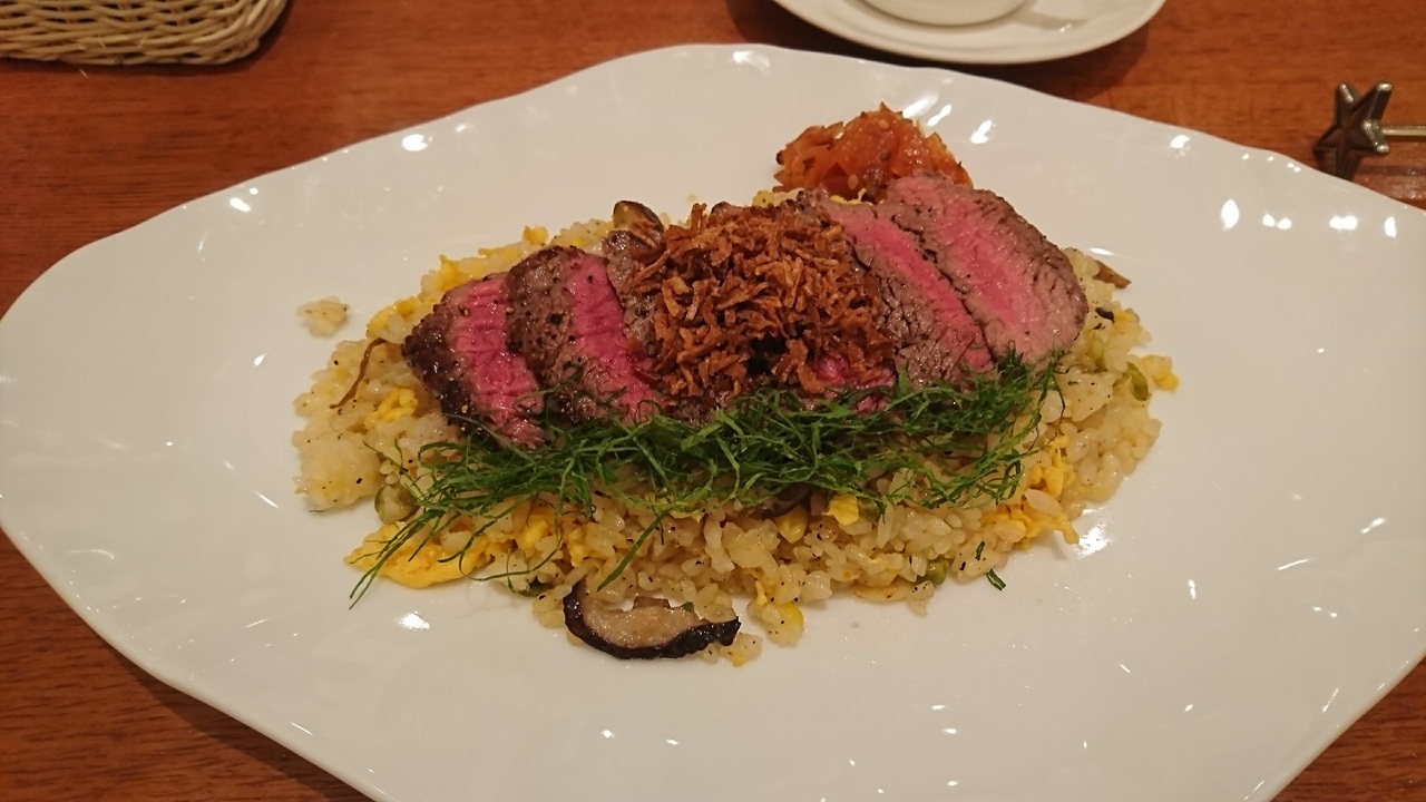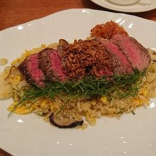 ステーキがのったピラフをオーダーしました。