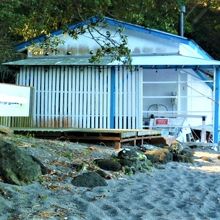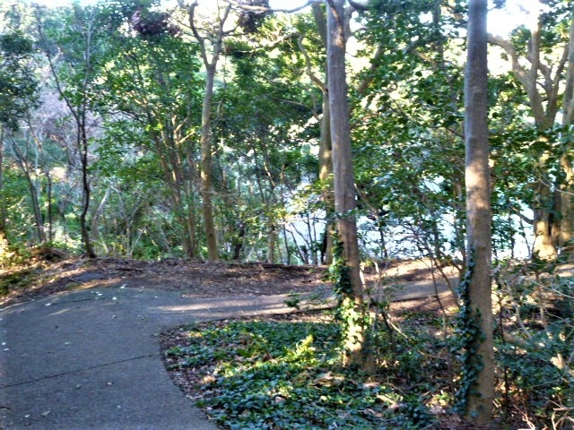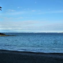 マリンパークの奥に森林の岬があって、下り坂の小道を降りると海岸に;T字路で、右折は三浦道寸公廟所、左折は[胴網海岸]に。波打ち際の砂地からの眺望は小網代湾は波も静かで、そして相模湾/向うには丹沢山地が♪ 海の家的平屋がありますが、今は閉じたままでしたが、(季節が来れば)BBQ/SUP/キャンプイベント等が開催の様です。