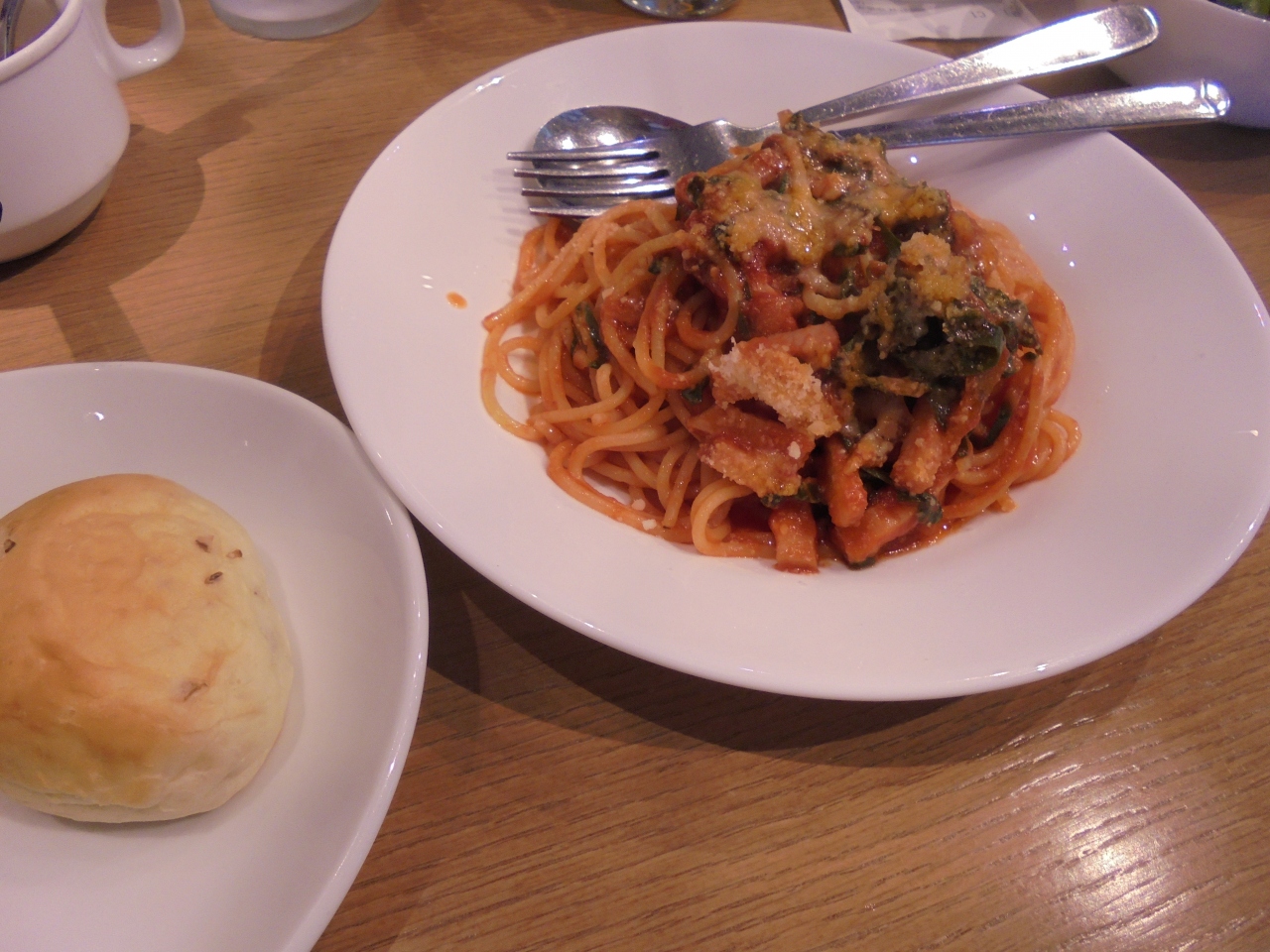 最近リニューアルしたお店で以前とはメニューも店内も全然違います。サラダブッフェランチ60分で980円、パン、スープお代わり自由でソフトドリンクはブッフェにあります。セットメニューでプラス300円で日替わりパスタ、プラス400円でハンバーグかチキンソテーというメニューです。新鮮な野菜なのでおいしかったです。焼いた野菜、惣菜などもあって野菜サラダ好きにはたまらないです。