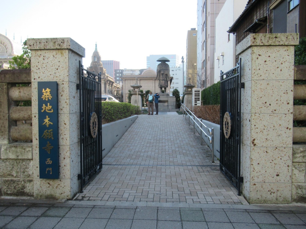 - 西門には地下鉄・築地駅出入口1から右手の歩道を左手(晴海通り)方向に1分半位行った左手です