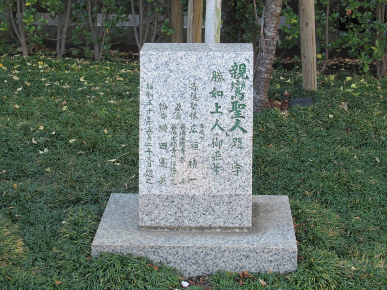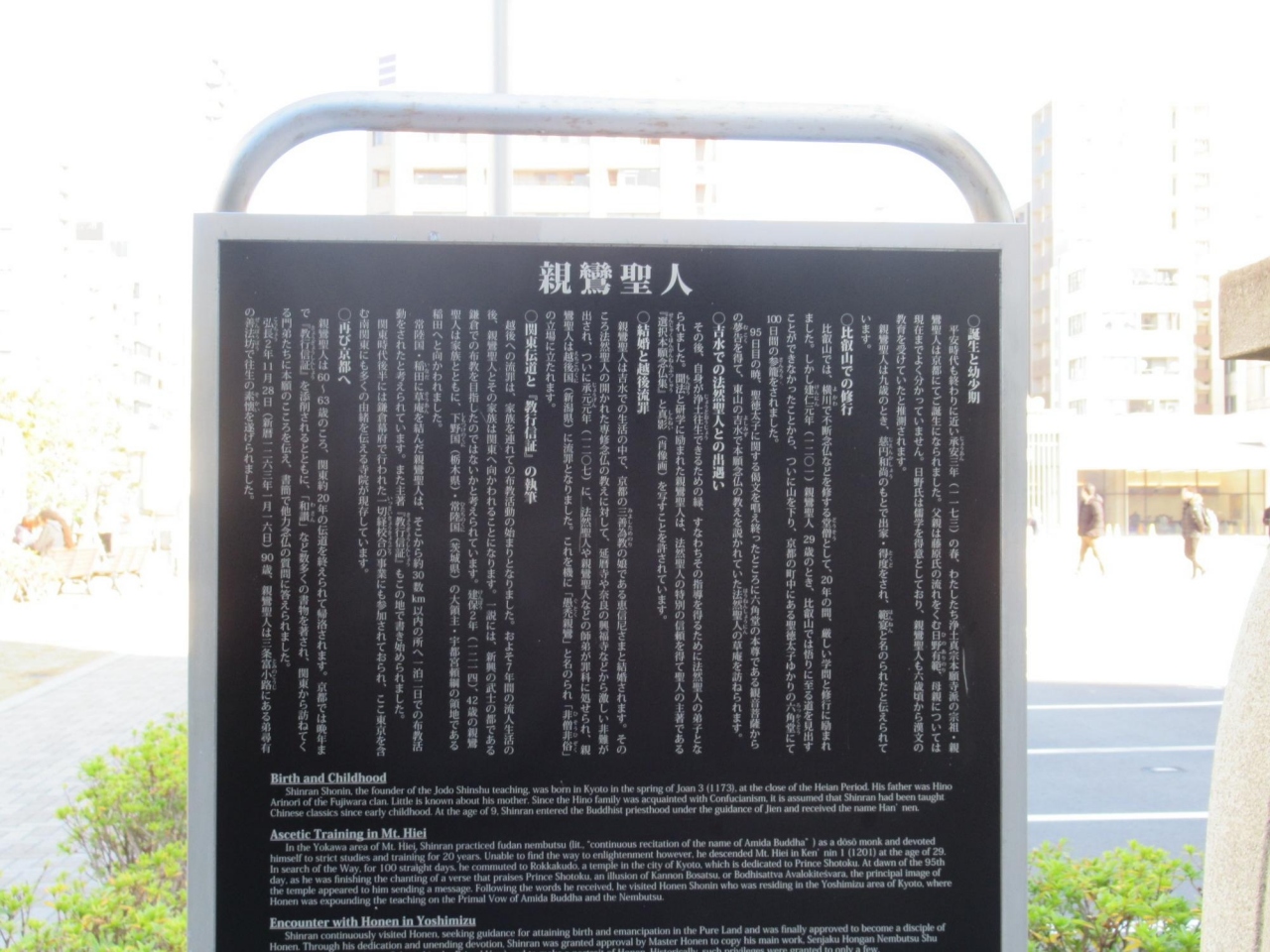 この 親鸞聖人像 は、左手後方に本堂が見え、親鸞聖人の生涯が簡潔に記された説明板があるのでご覧になることをお勧めします。