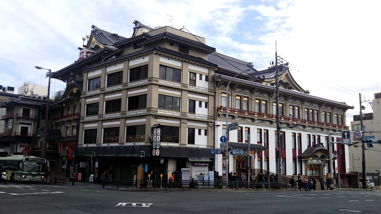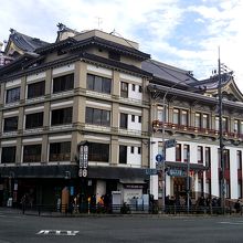 歌舞伎ばかりやっているものとおもっていましたが、訪問時は松竹新喜劇が上演中でした。八坂神社とあわせて四条の顔のような存在でしょうか。