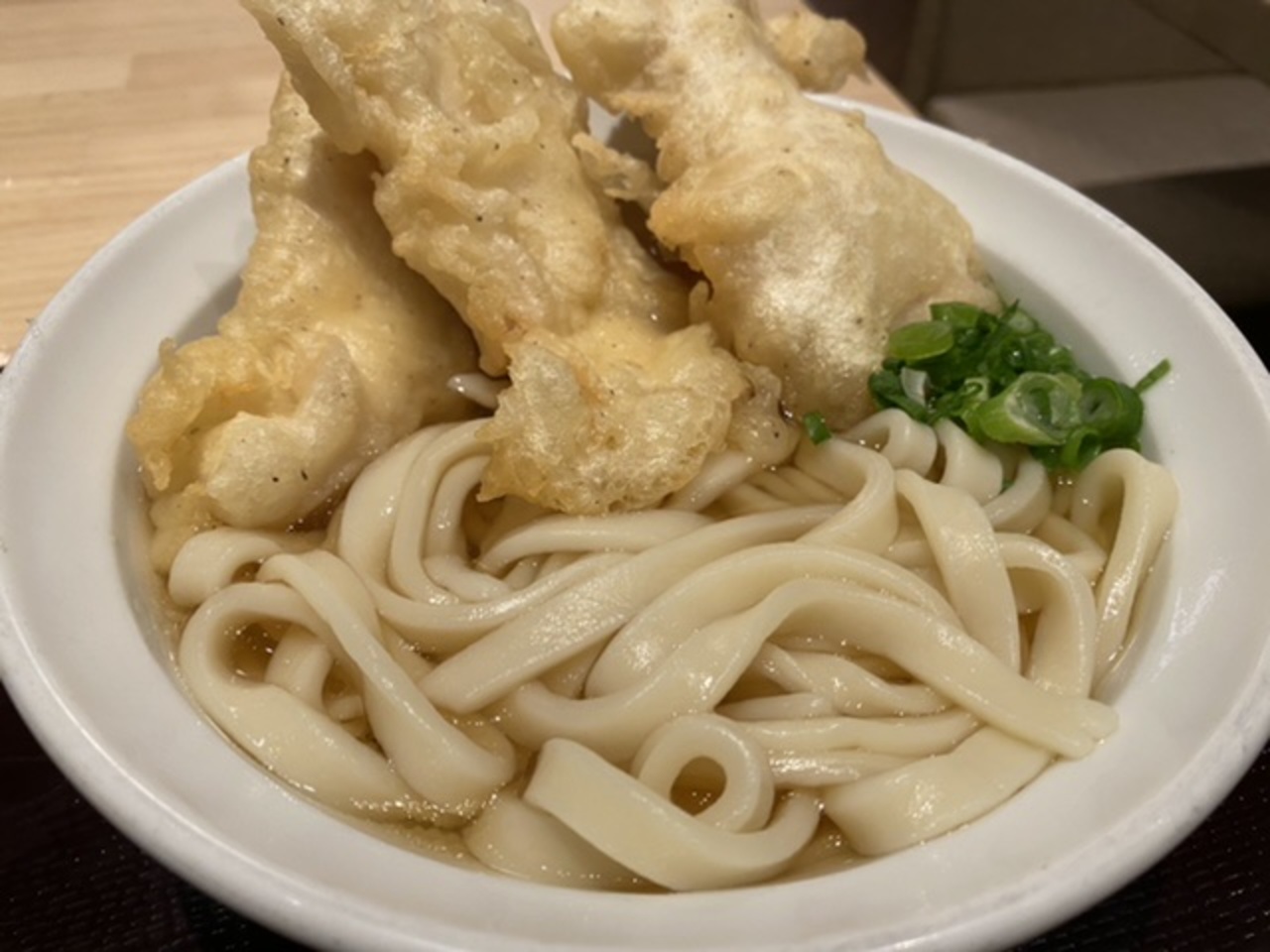 地下鉄千代田線霞ヶ関駅直結の飯野ビルディングの地下にあるうどん屋さんです。入口で食券を購入し席に座ります。鳥天うどん750円を購入。席に座ると店員さんからうどんの量を聞かれます。3玉までは同一の料金です。平べったいうどんは独特の食感。出汁の効いたスープとの相性も程よいです。
