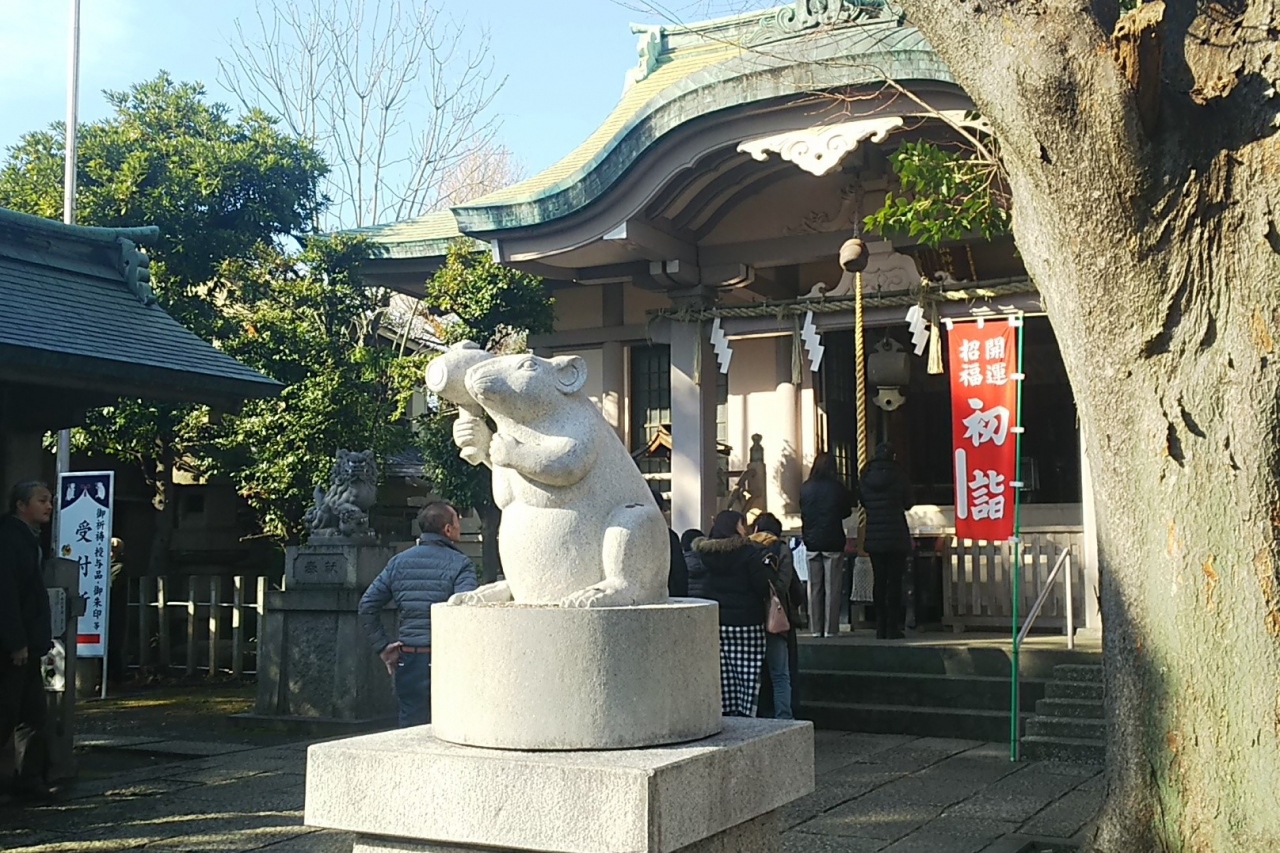 境内に狛犬ならぬ「狛ねずみ」が置かれているのが特徴的で、「庚子年」の2020年はクローズアップされたようで、人気スポットになっていました。