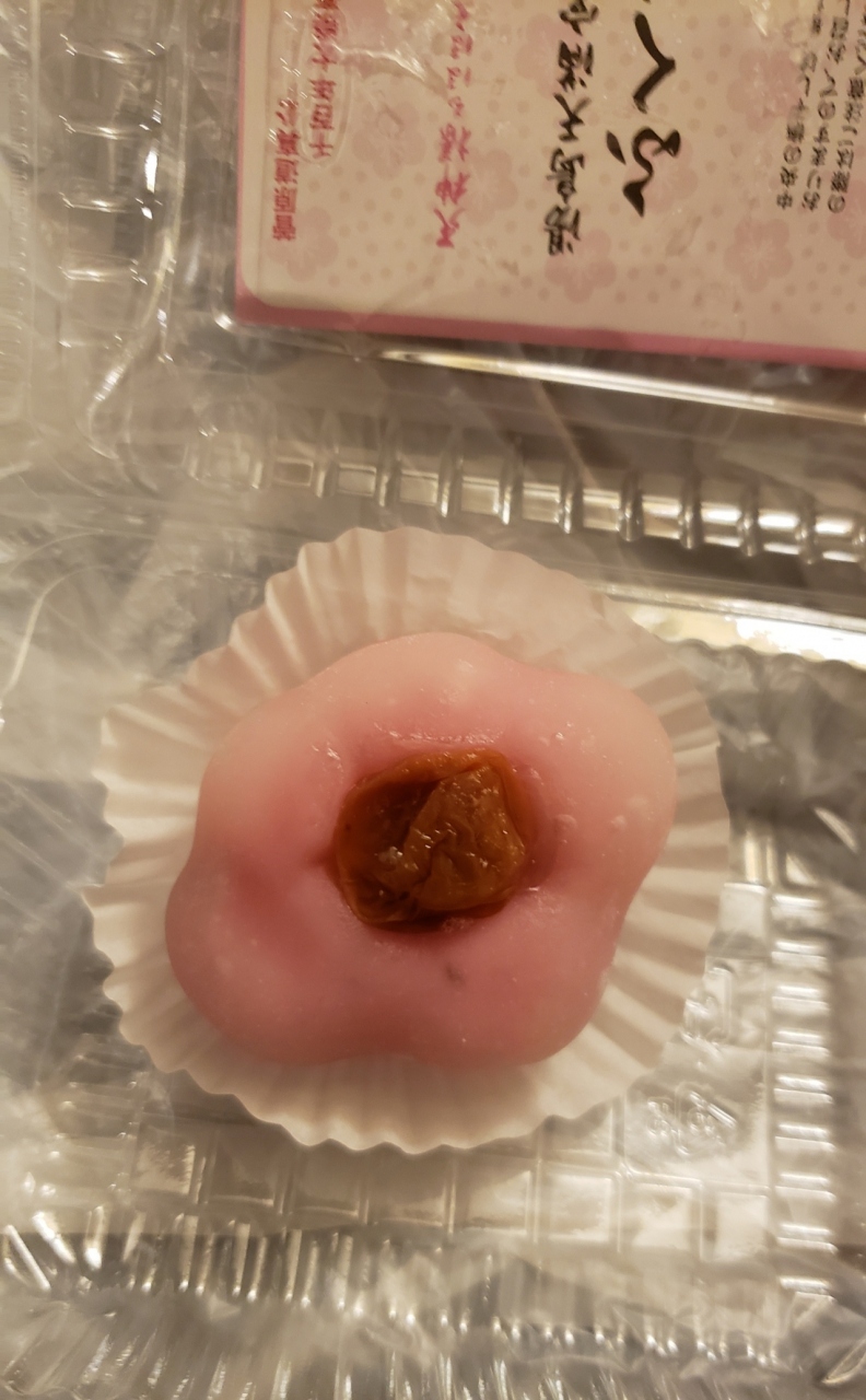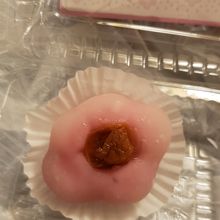 ピンク色で中は白あんに梅が練りこまれているようで甘酸っぱくて美味しかったです、お勧めです。