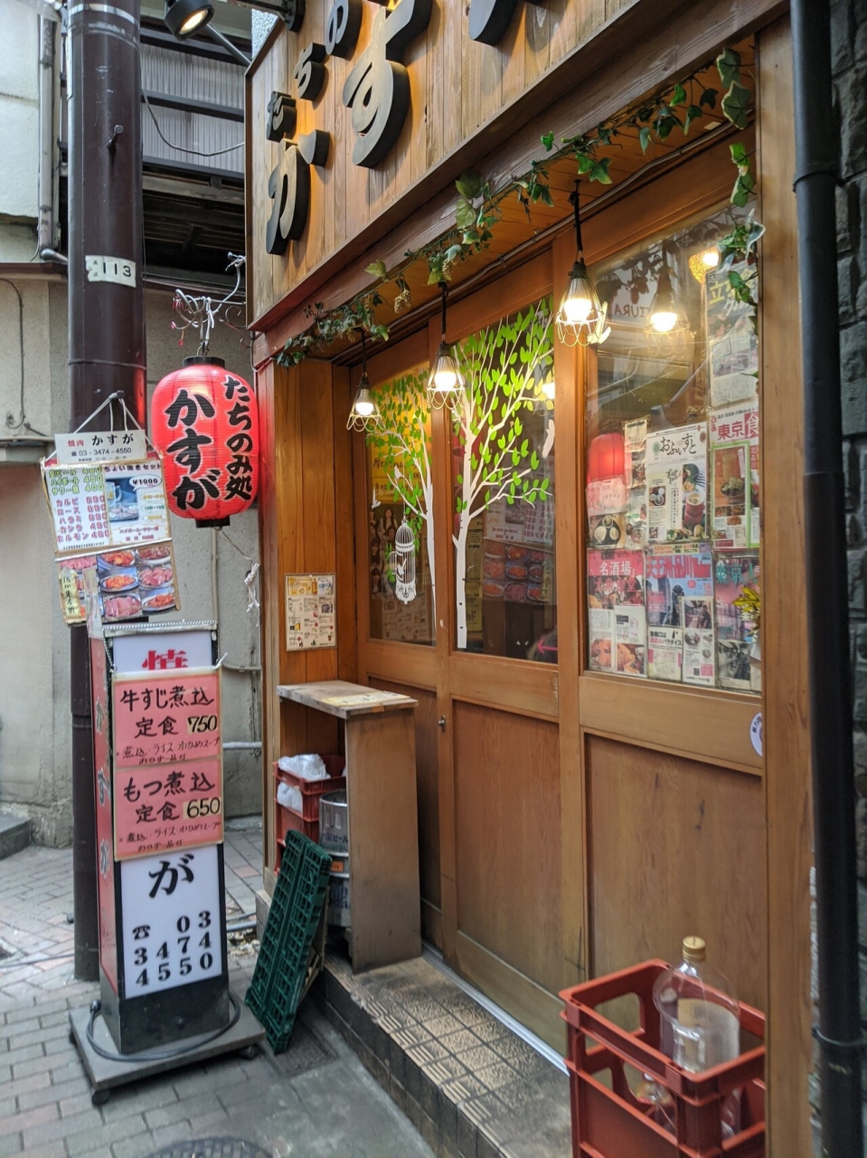 品川駅港南口を出て直ぐのところにディープな路地裏の商店街がありますが、このお店はその一角にありました。普段は立呑み居酒屋のようですが、ランチタイムなら、もつ煮込や牛すじ煮込定食をお手頃な値段で食べることができます。もつ煮込は臭みもなく、よく煮込まれていて美味しかったです。