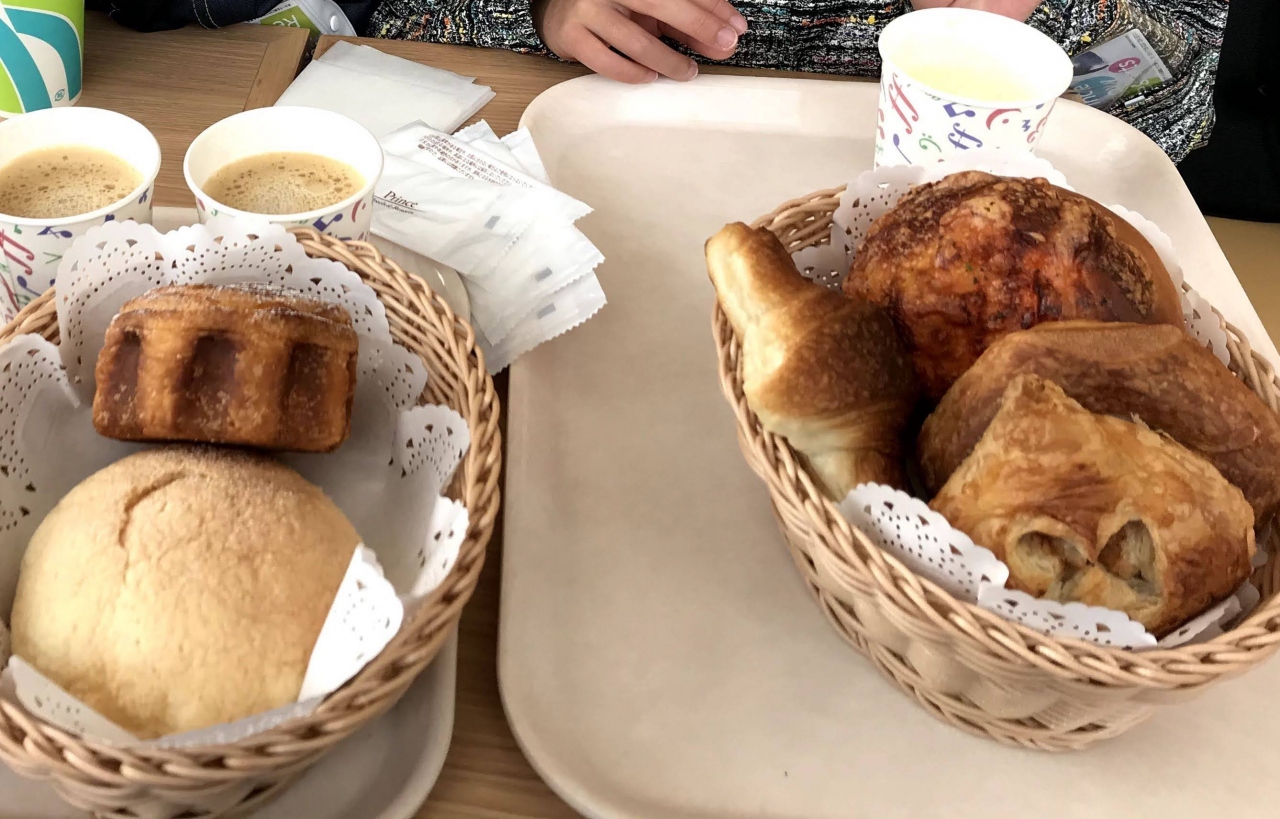 おしゃれとかホテルの高級といった内装ではなく、スーパーに入っているパン屋さんみたいな感じです。値段も200円前後。