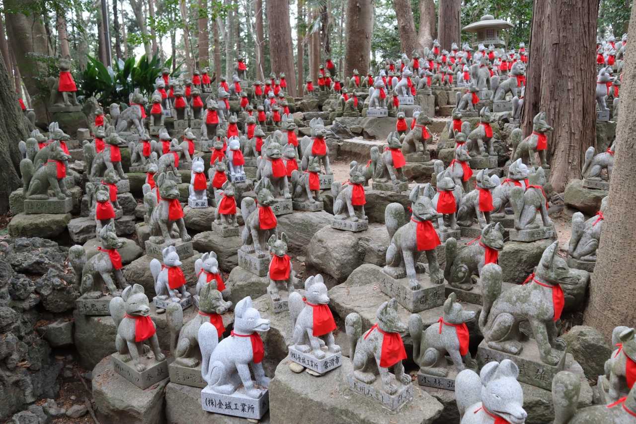 キツネはご本尊のお使い、その数はおよそ一千体にものぼるとか。