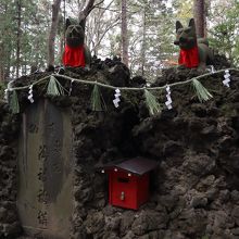 祈願成就の御礼として奉納された多くのお狐さんがお祀りされています。