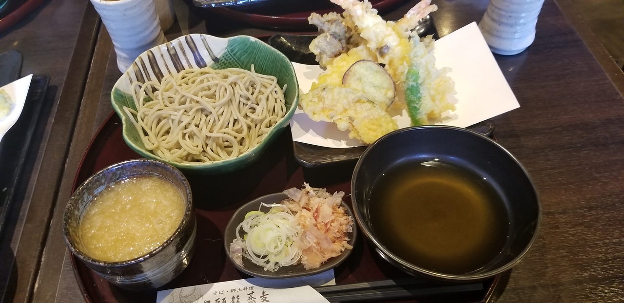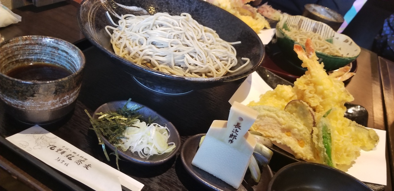 神楽坂の石畳途中にあります。人気のソースカツ丼とお蕎麦のセットなどあります。落ち着いた店内で頂くおろし蕎麦と天ぷらも美味しかったです。地酒も種類豊富で新潟の珍味と共に頂けます。お昼時は、いつも並んでます。年末などは、お蕎麦がなくなってしまうと終わりになるようです。早めに行ってみてください。
