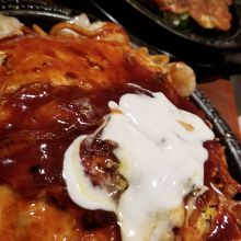 お好み焼が食べたくて行きました。おつまみ系もあり、種類も豊富で熱々の焼きたてのお好み焼、ねぎ焼き、とんぺい焼きなどを鉄板に乗せて運んできてくれます。自分で焼かないシステムです。ついついビールが進みます。たくさんの種類を、シェアして食べました。