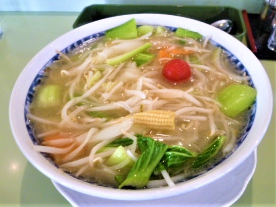 観光で三浦市(三崎港/城ケ島/油壷/,,)に行くたびに、三浦海岸沿いの道(R134号)にある[黄色の建物と広告=ラーメンの城門]が目に付きます。今回は初めて入ります;三浦海岸交差点から諏訪神社入口交差点のちょうど真ん中です。混んでましたが、一人だったのでカウンター席に。 野菜ラーメンを頼みましたが(メニューを見たら`城門ラーメン`もありましたので今度は,,)、野菜がたっぷり+さくらんぼが♪ 海の見えるラーメン店ですね、駐車場もありました。