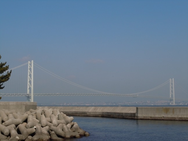淡路島は宿泊だけの旅程で観光がないのが残念でした。岩屋港が宿の送迎ポイントだったので、往路淡路ジェノバラインを利用した時、明石海峡大橋を通り見る事が出来ましたが、雨で残念な眺めでした。しかし翌日岩屋港からはっきりきれいに見えて驚いたし嬉しかったです。天気に恵まれたせいもありましたが、私には意外なピューポイントでした。