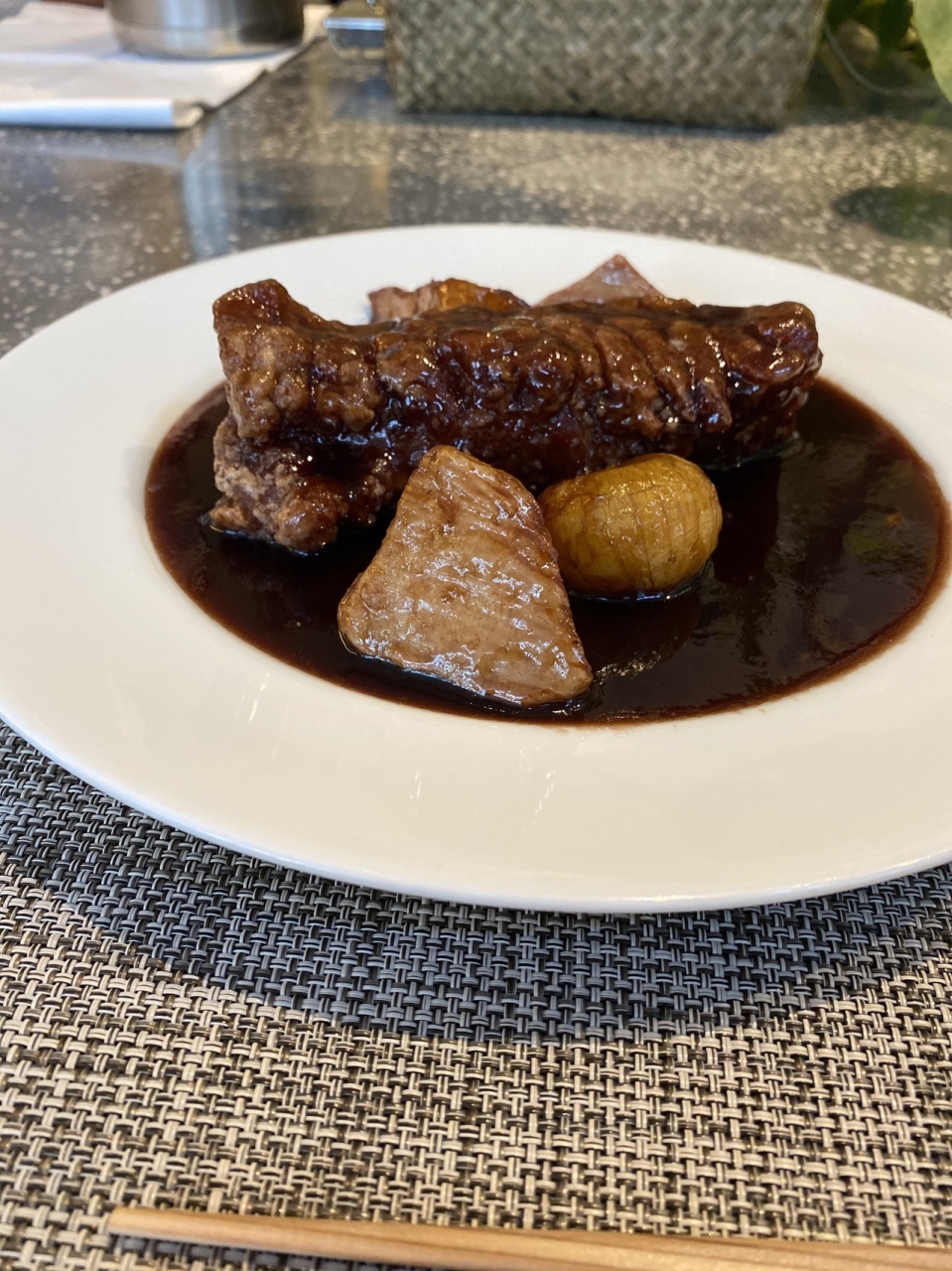 一人前でもボリューム満点で、180グラムの豚肉とお野菜はナイフで切り分けて食べるモダンな酢豚✨