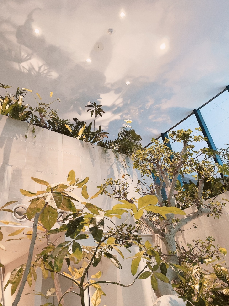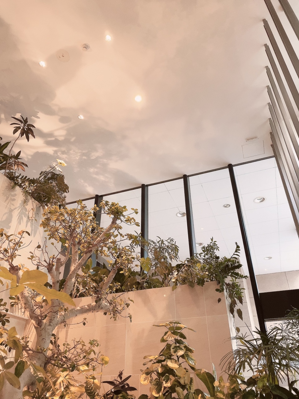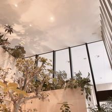 森林を感じる空間は天井は5mある開放感と、緑がたくさんで落ち着いてお食事が出来ますし優雅で豊かな気持ちにしてくれます🍃
