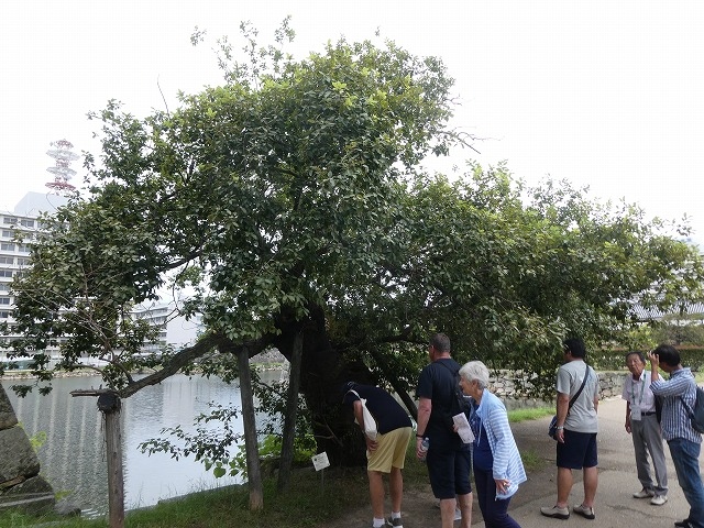 広島城で護国神社前から二の丸跡へつながる橋のたもとに被爆ユーカリとマルバヤナギがあります。原爆の爆心地から740メートル。生き残った樹木です。マルバヤナギは幹の中が空洞になりながら現在も生きています。ユーカリも同様。知らなかったけど、60年近く前、台風で上の方が折れたけど、若い枝が出てきて、現在に至っているそうです。爆心に近く、この付近で屋外に出ていた人は全滅した言われてきましたが、植物の生命力はホントに強いと感じます。当時、草木は75年生えないなんてバカなことをよくぞ言ったものです。