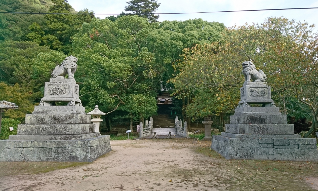 萩城跡指月公園内にある神社で12代まで萩藩歴代藩主が祀られているそうです。朝行ったせいか人がおらずスムーズにお参りできました。狛犬が大きくて迫力がありました。