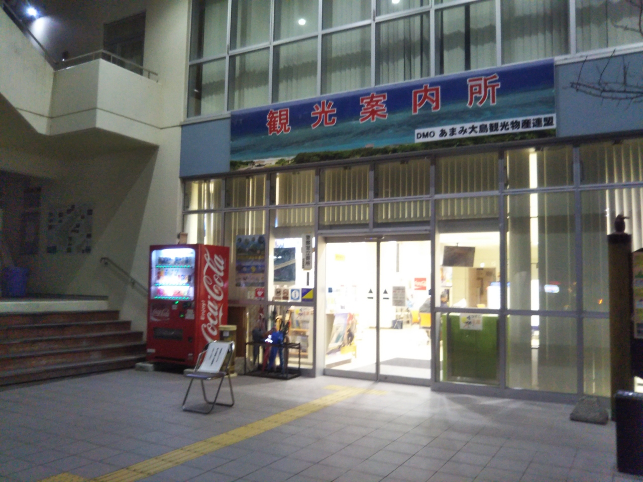 永田橋の末広市場の向いにあります。入るとすぐ左手に観光案内所があり、ここでは奄美内各スポット毎の観光用パンフレットが多数置いてあり、自由にとっていけます。また中央部にはテーブル席があり、ここでは休憩しながらパンフを眺め、次の旅程の検討もできます。